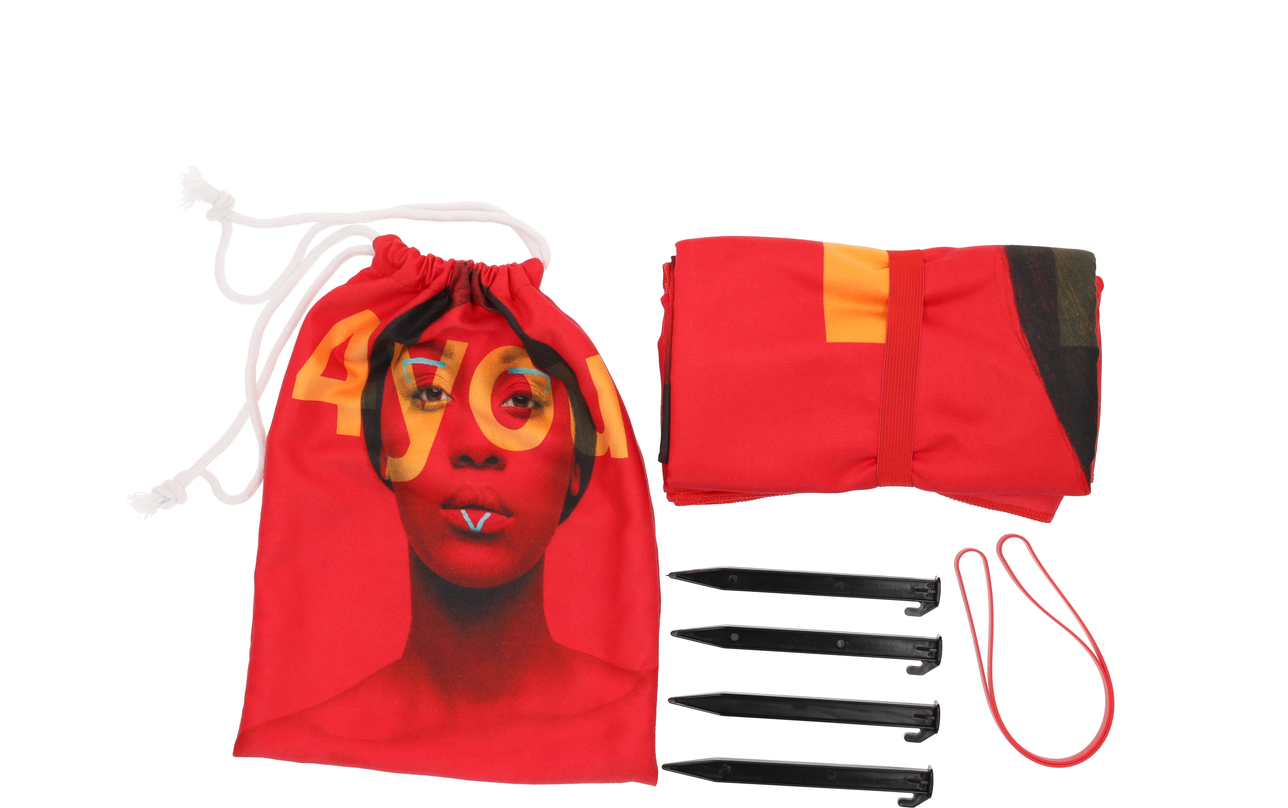 Compacte microfiber strandhanddoek met slimme bevestiging. Inclusief zandharingen en elastische band. Full colour bedrukbaar en ideaal voor zomercampagnes.
